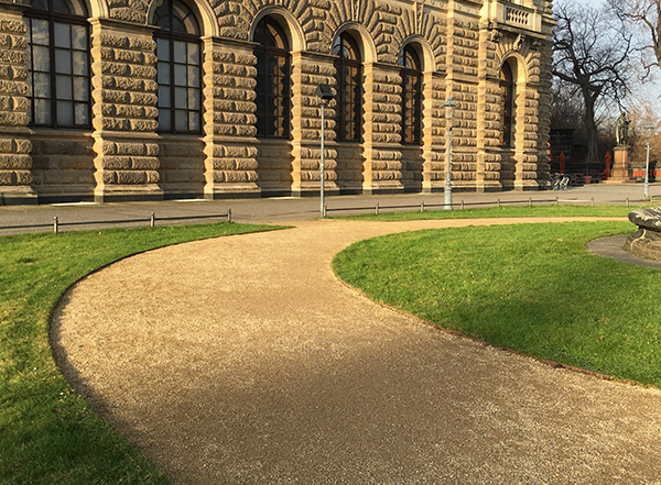 素土鋪裝是以粘土、風(fēng)化土等現(xiàn)地土壤(現(xiàn)場土壤)為主要材料,加入特殊硬化劑的混合材料進行的道路鋪裝。道路保有土壤原本的色彩和景觀效果,但雨天,道路不會積水,不會泥濘,行走舒適。